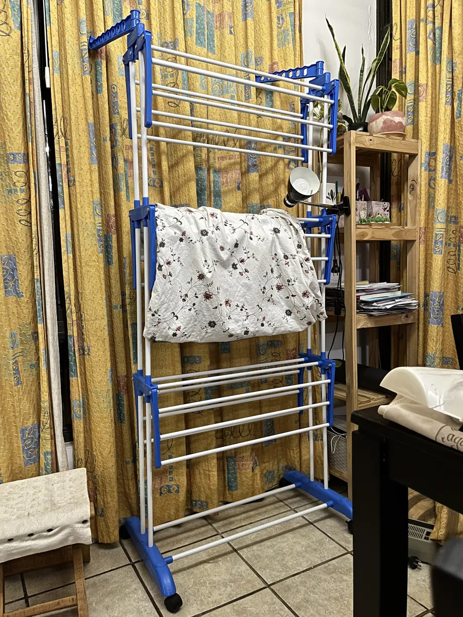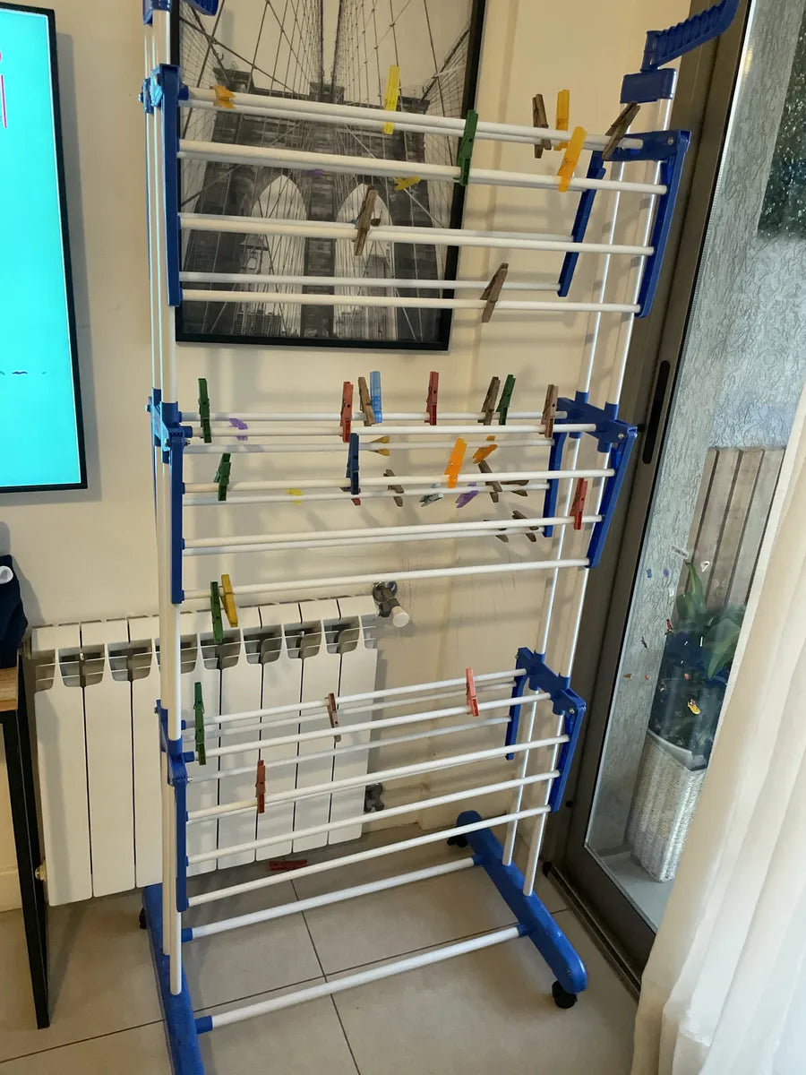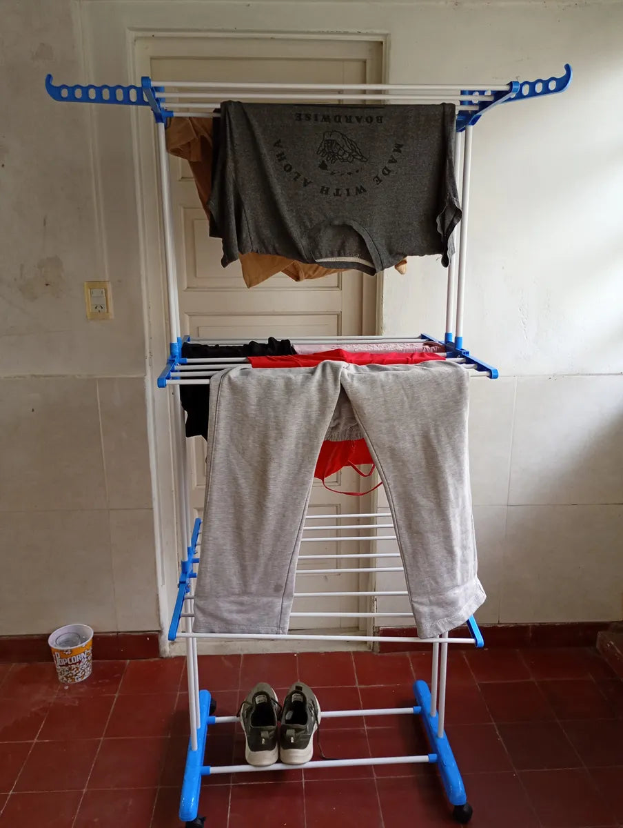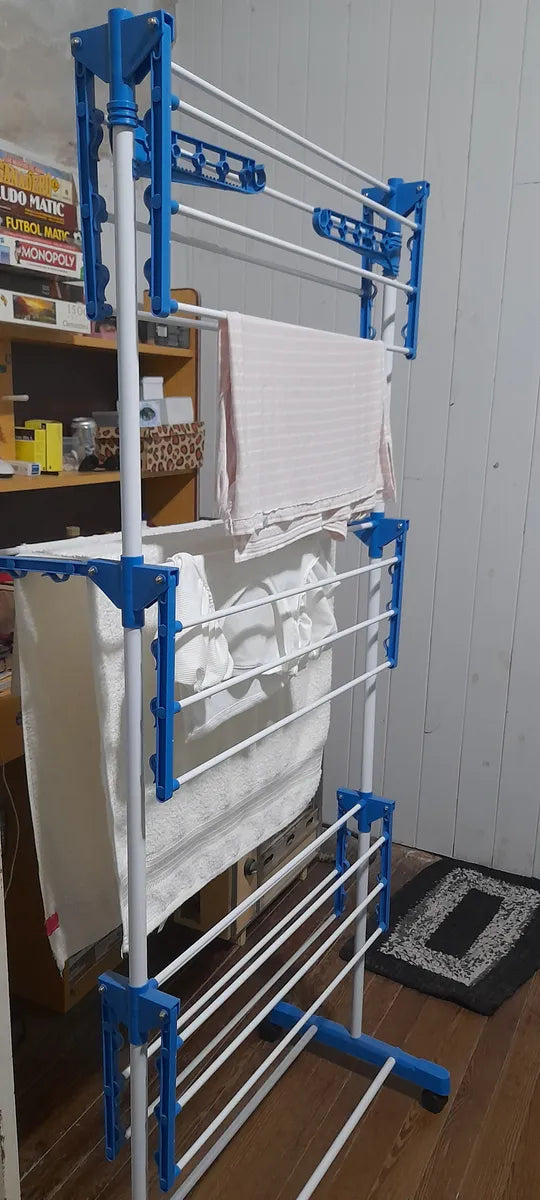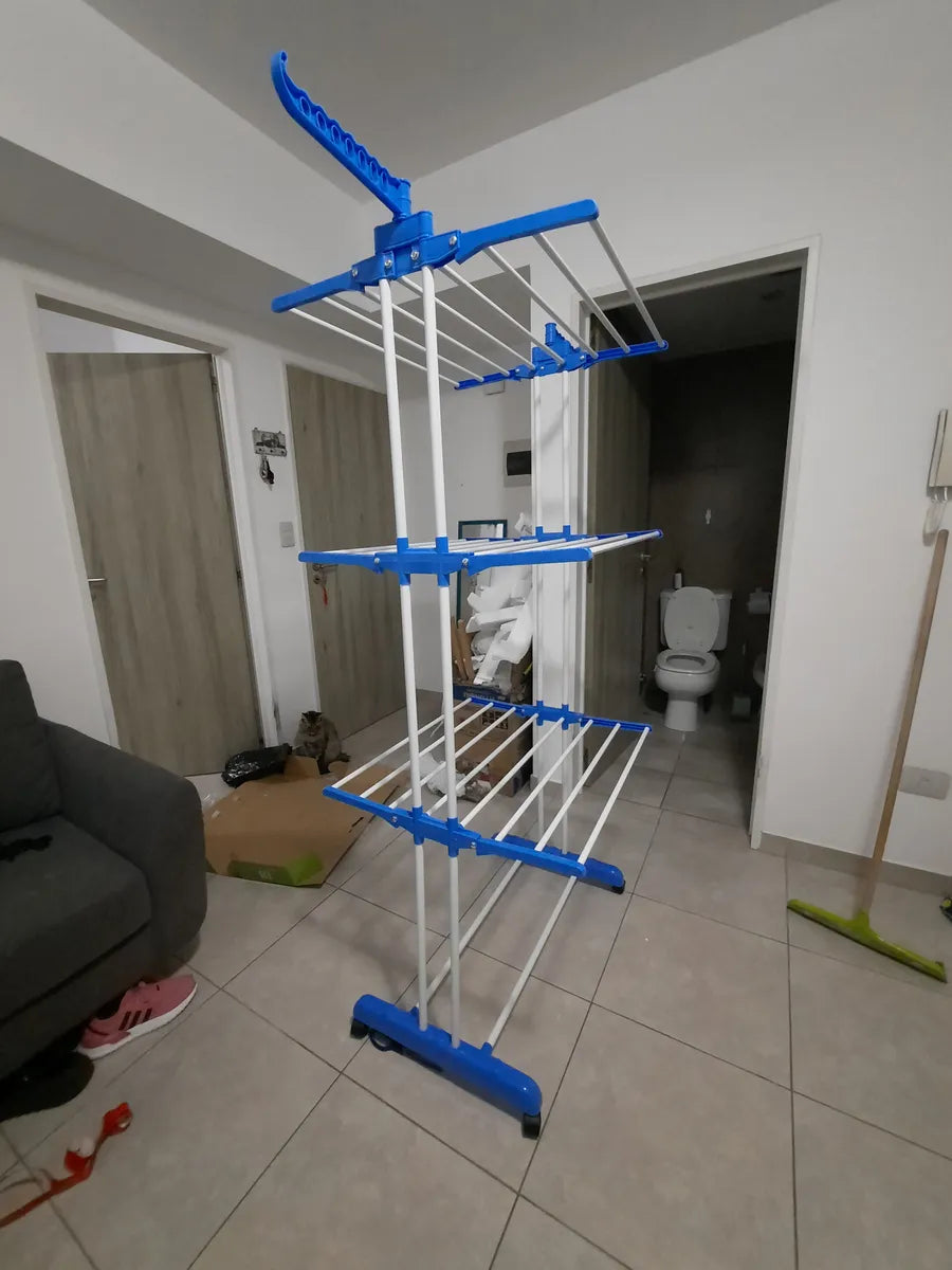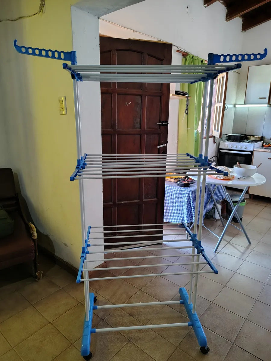Es súper práctico. No ocupa lugar muy cómodo al tener las rueditas y gran capacidad para tender la ropa.
