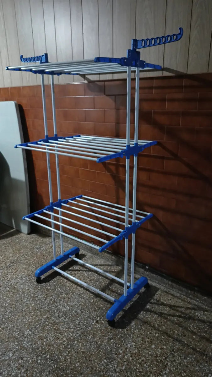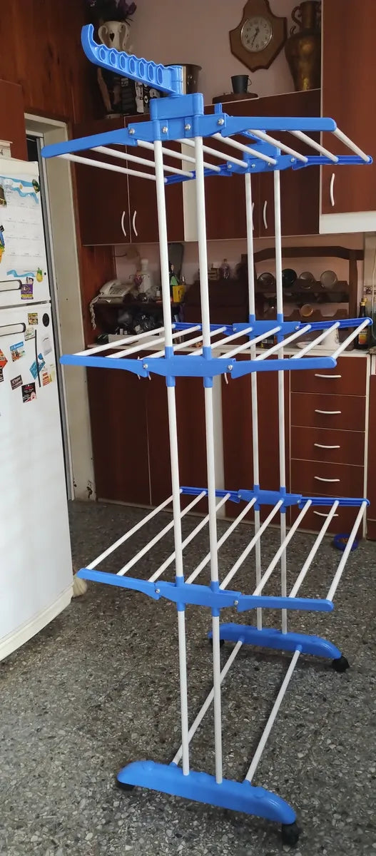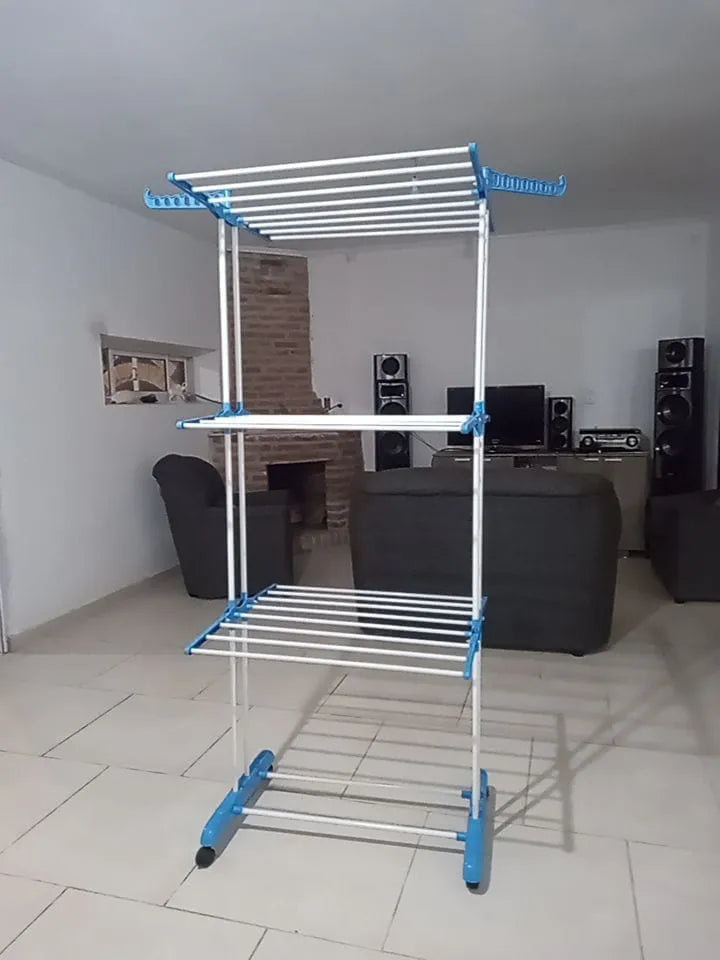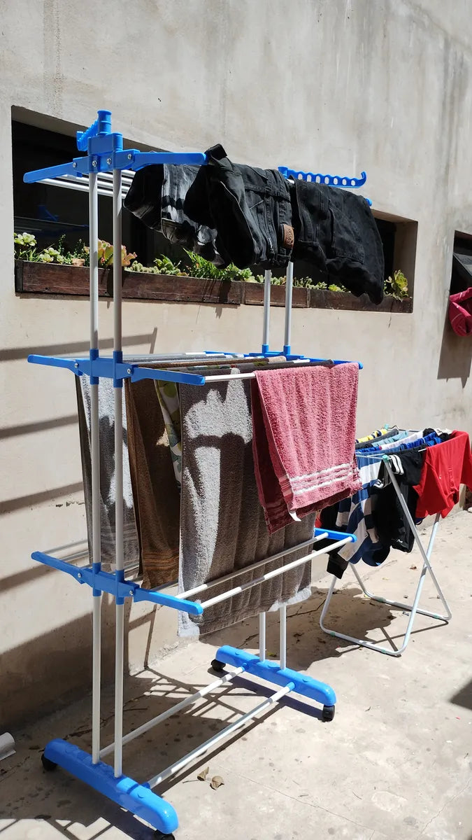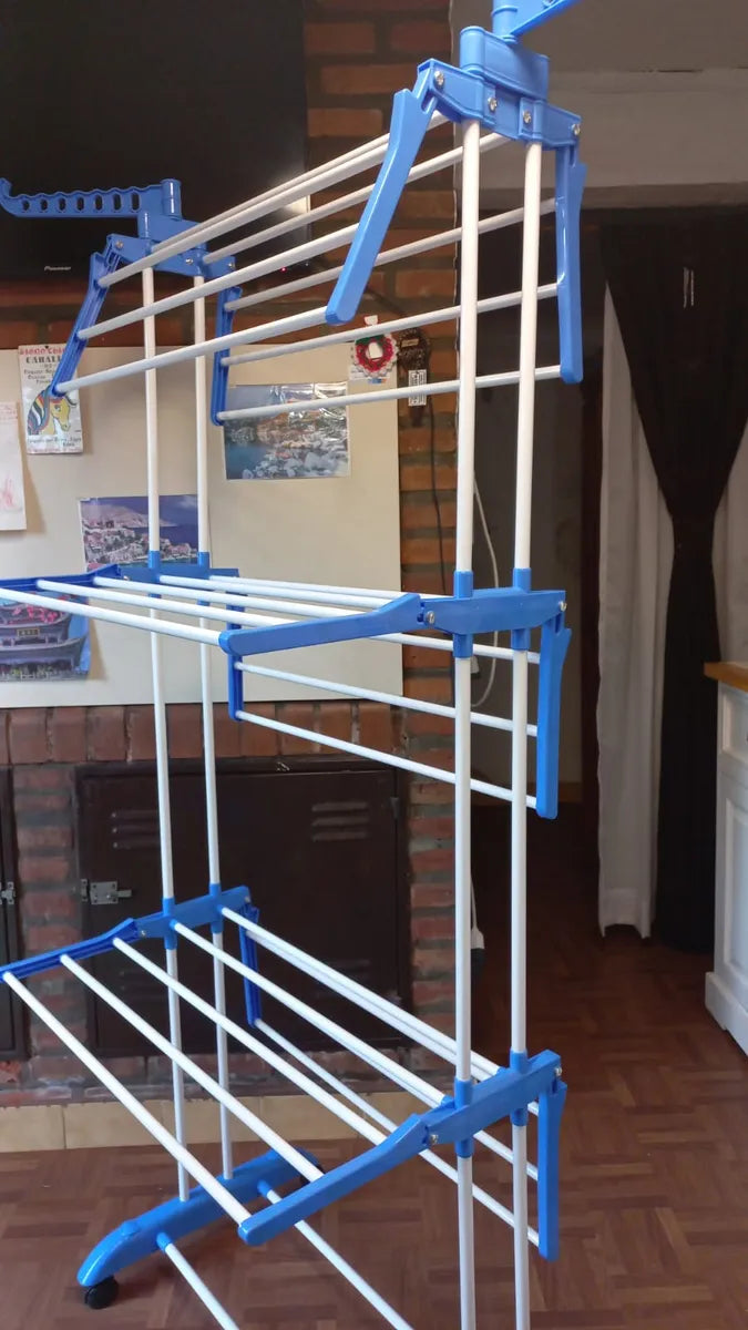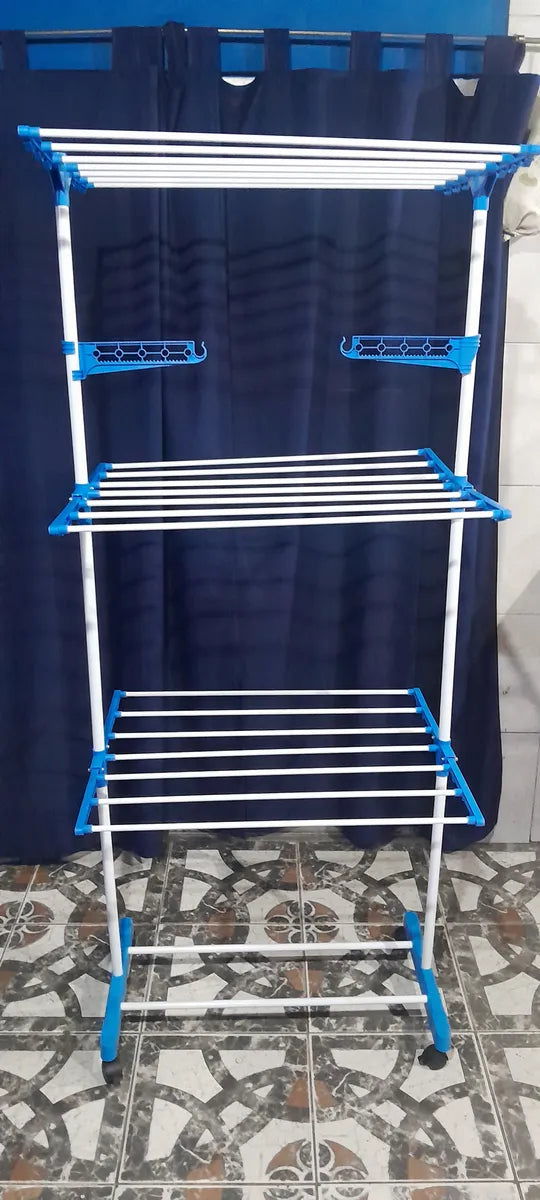 Tender Vertical 3 Niveles De Pie Colgador Ropa Con Ruedas Portatil Color Blanco Y Azul SmartHome