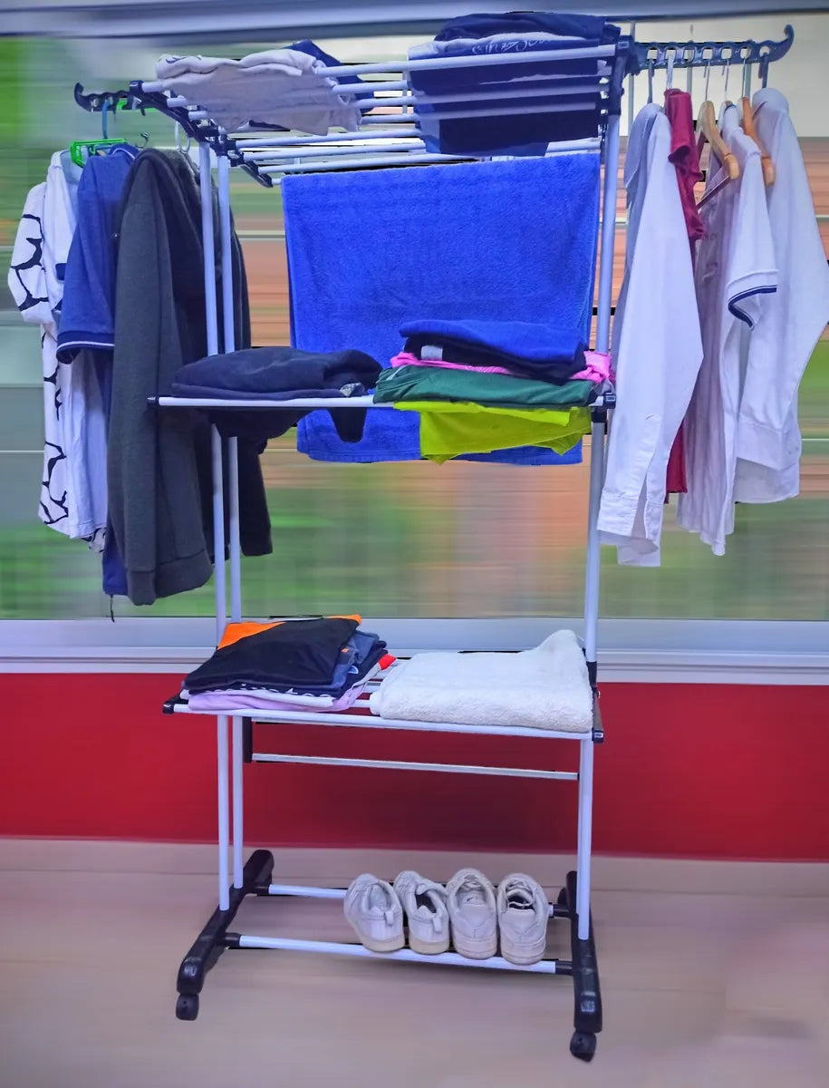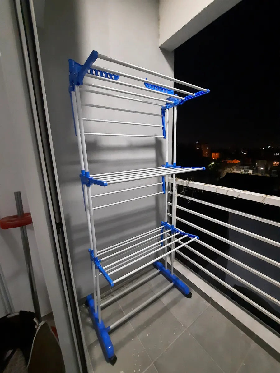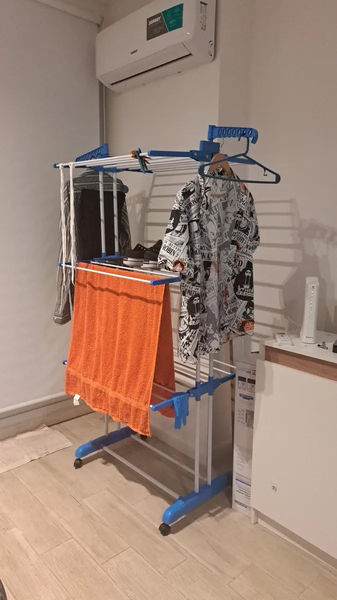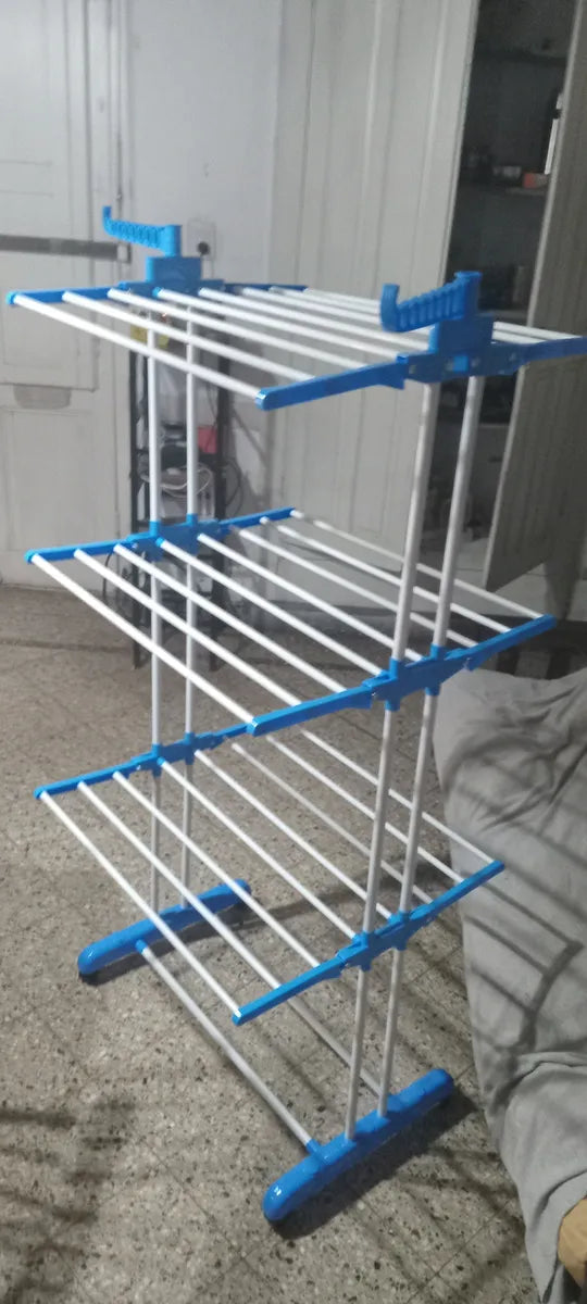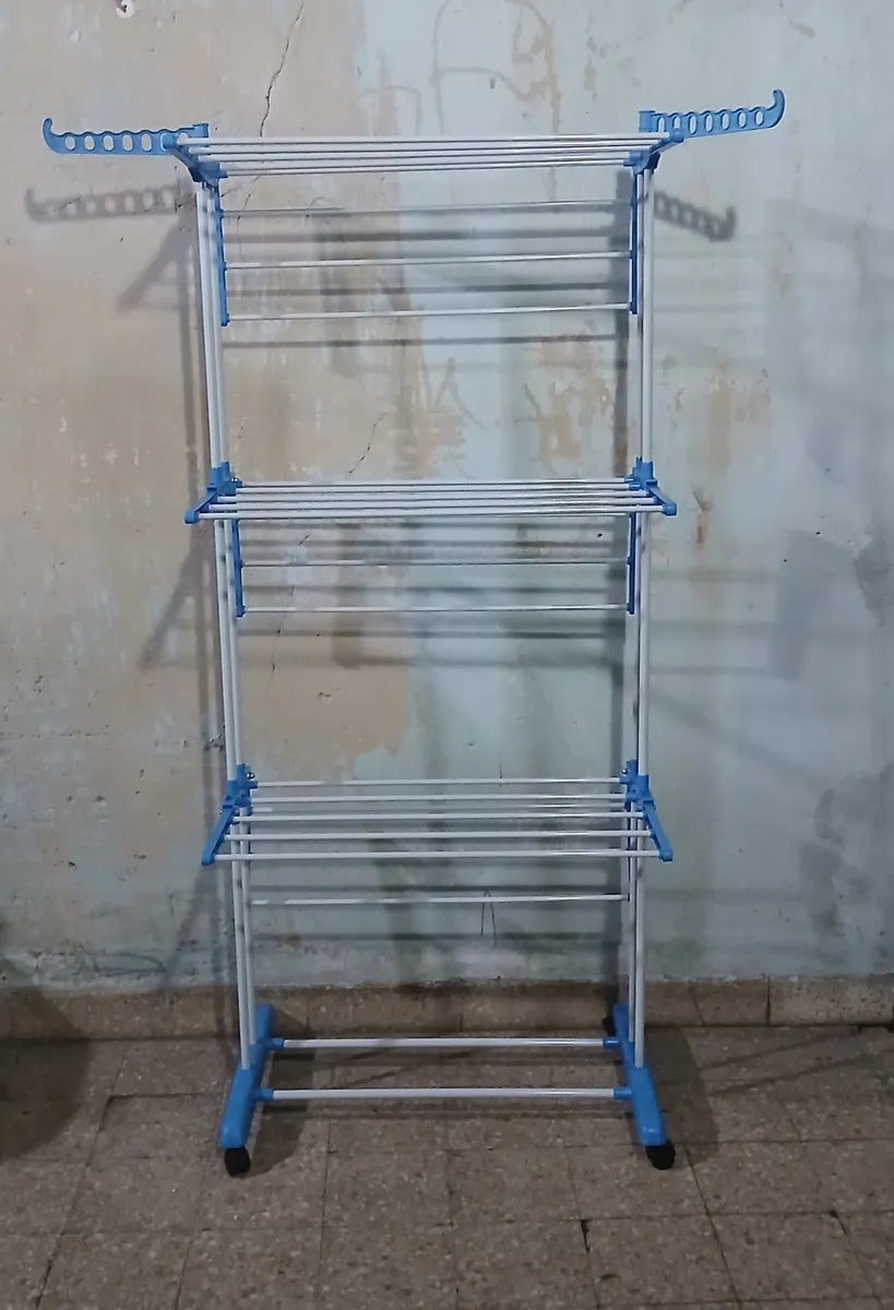 Tender Vertical 3 Niveles De Pie Colgador Ropa Con Ruedas Portatil Color Blanco Y Azul SmartHome