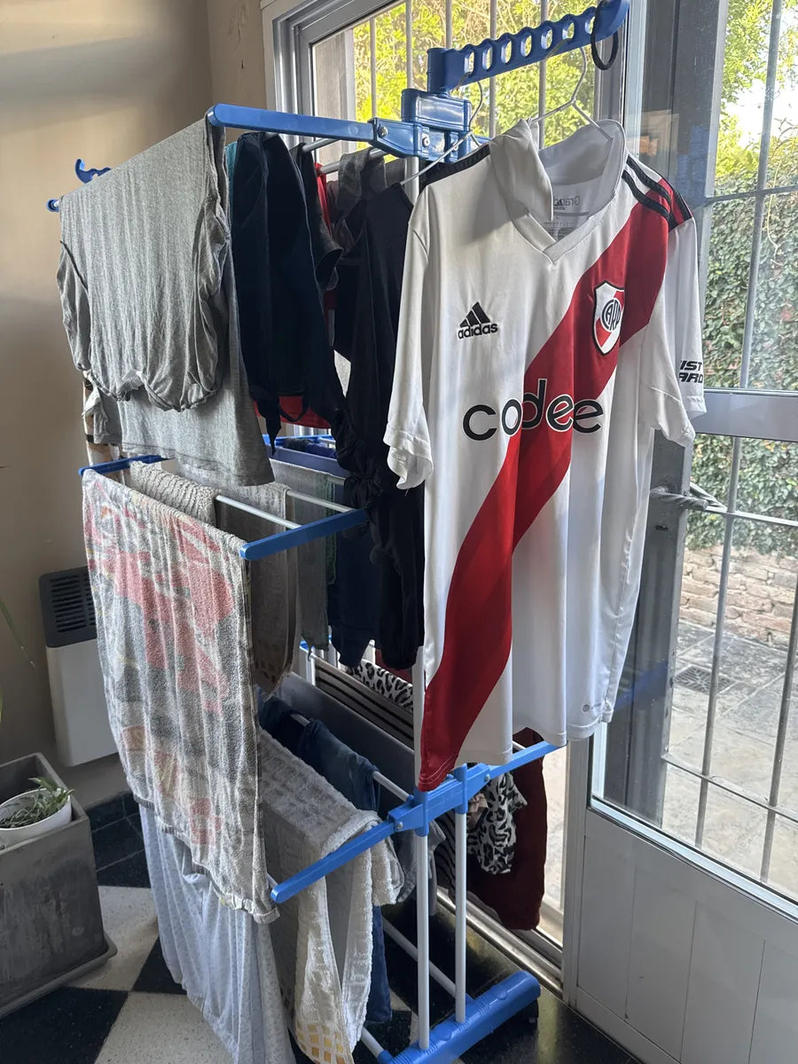 El tendedero es plegable, por lo que podés guardarlo fácilmente detrás de una puerta, en un rincón o al costado de un mueble.