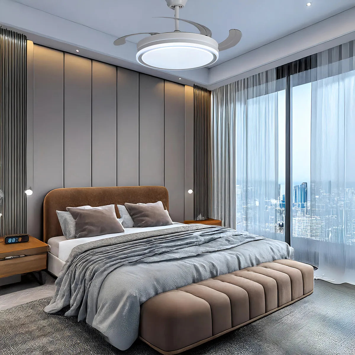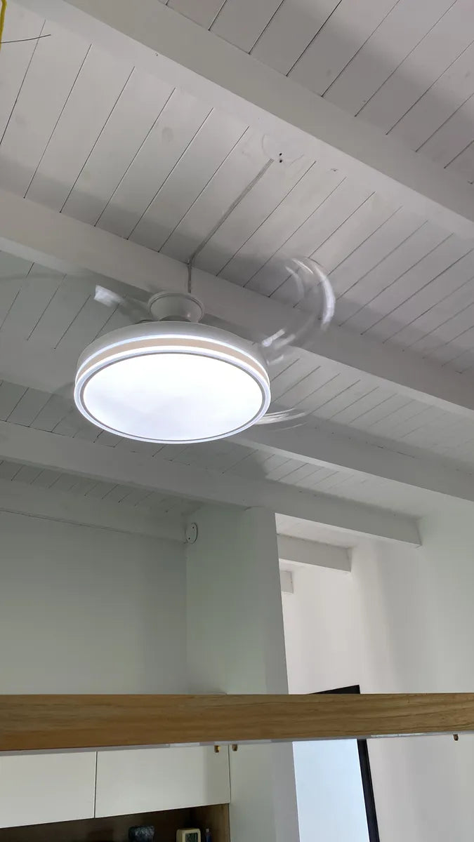 Sí, el Ventilador Vitta cuenta con 4 aspas transparentes retráctiles que se despliegan automáticamente cuando se enciende y se ocultan al apagarlo, brindando un diseño moderno y discreto.