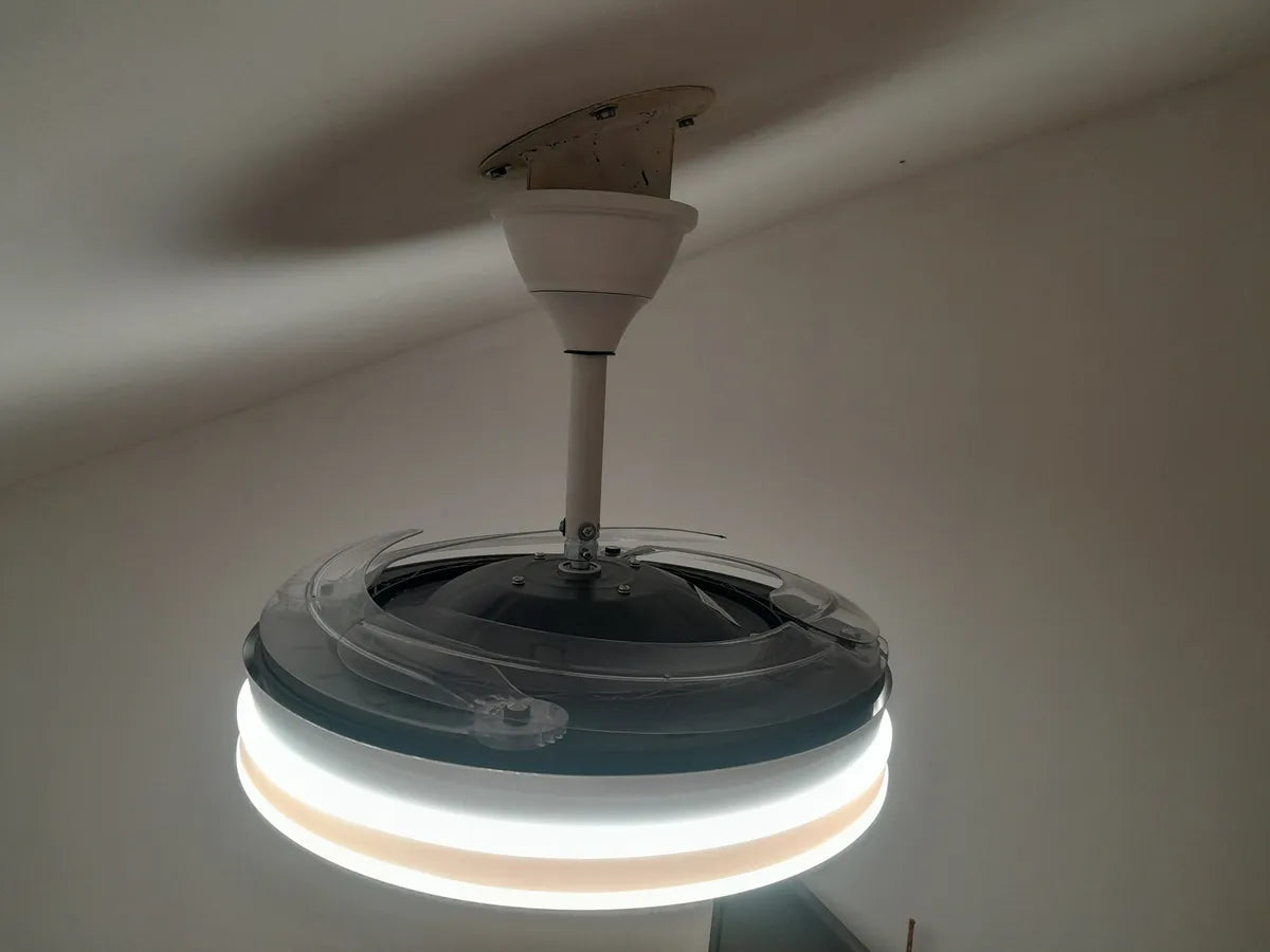 Es hermoso. Silencioso y las opciones que tiene para cambiar la iluminación son buenísimas. Es fácil de instalar. Mucho más fácil que un ventilador convencional.